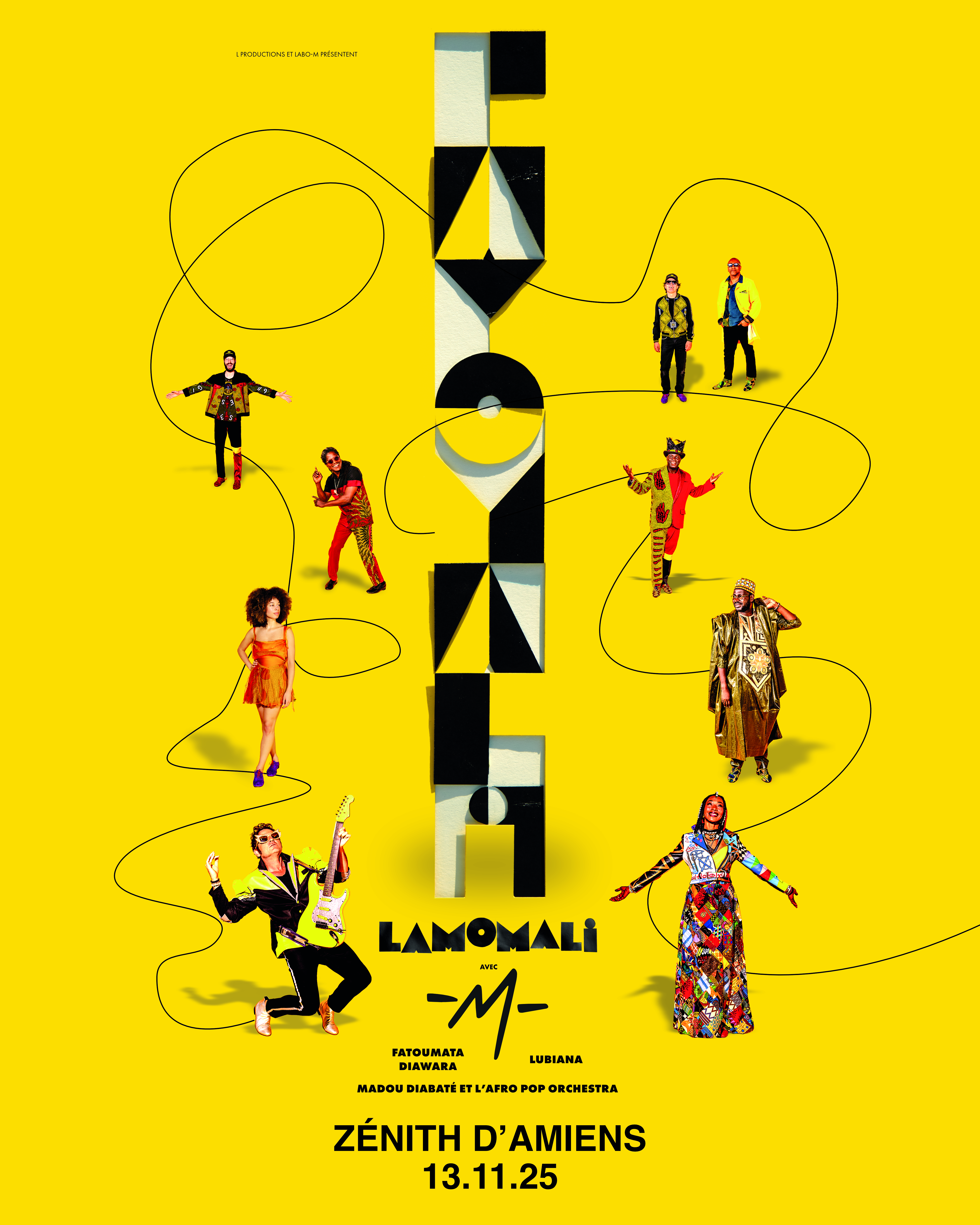 Lamomali n’est ni une suite, ni une répétition, mais une exploration profonde des racines qui l’ont fait naître. Cette nouvelle tournée est une invitation à plonger dans des cultures qui se croisent et se répondent, et à ressentir la puissance de la musique au travers des instruments traditionnels, de voix exceptionnelles, et des jeux d’artistes venus de tous les horizons, le tout porté par un -M- qui ne cesse jamais de se réinventer.
